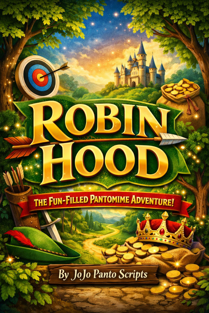 In this high-energy, modern pantomime, the cruel Sheriff of Nottingham rules the town with an iron fist, aided by his not-so-bright but fearsome Chief of Police, Gayle of Gisbourne. As the people struggle under outrageous taxes, hope comes in the form of Robin Hood: a good-hearted, slightly dim crack-shot archer who secretly steals back the Sheriff’s wealth to help the poor. Robin lives in Sherwood Forest with his merry band, including the gentle giant Little Jane and the rock-star minstrel Alanna Dale. At the heart of it all is Mother Hood—Robin’s larger-than-life mum and the show’s Dame—who runs the Sherwood food bank and provides both chaos and compassion in equal measure.